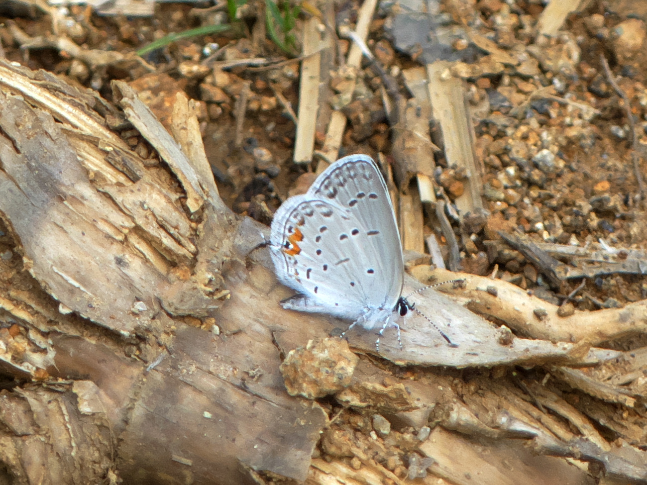 So let's get to the stationary butterfly identification. Below is an azure, and you can identify it by what it lacks: